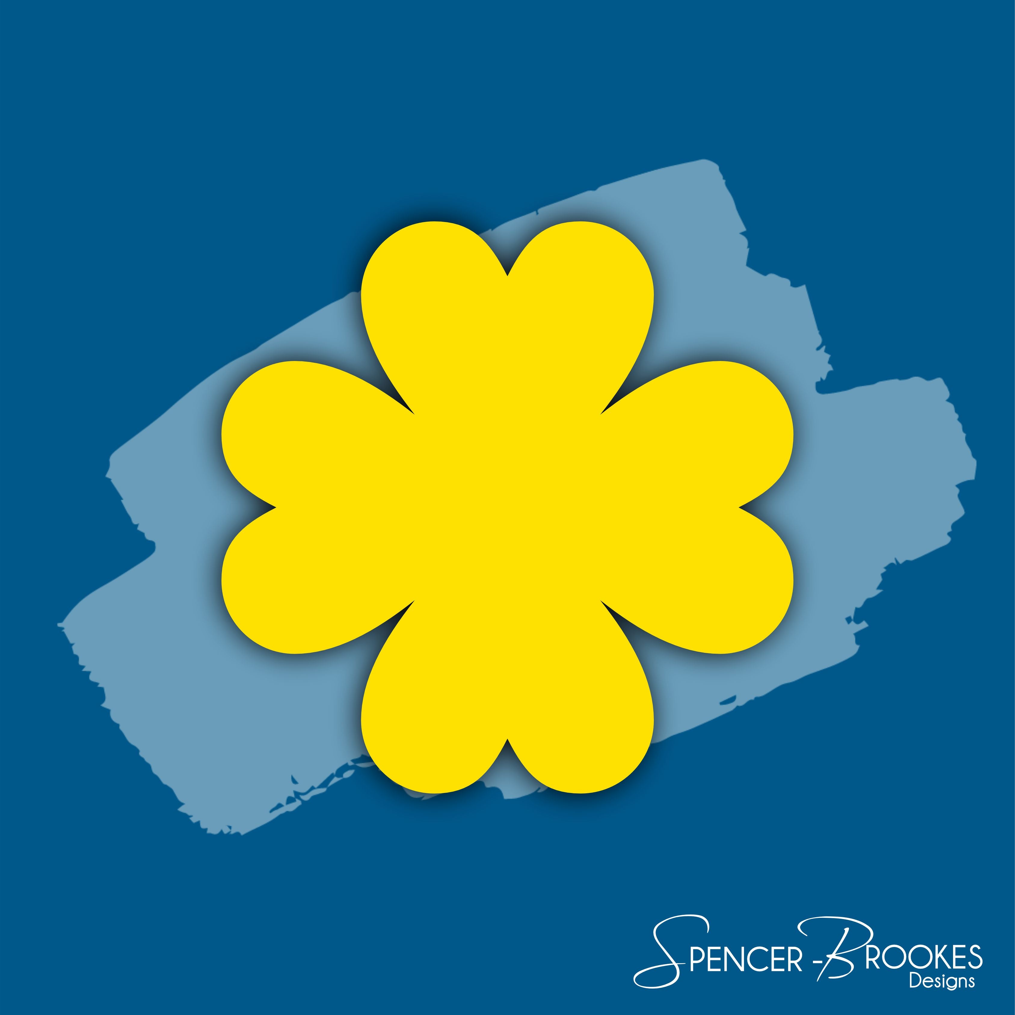 A basic flower shape in coloured acrylic. Perfect for use with vinyl and etching machines.