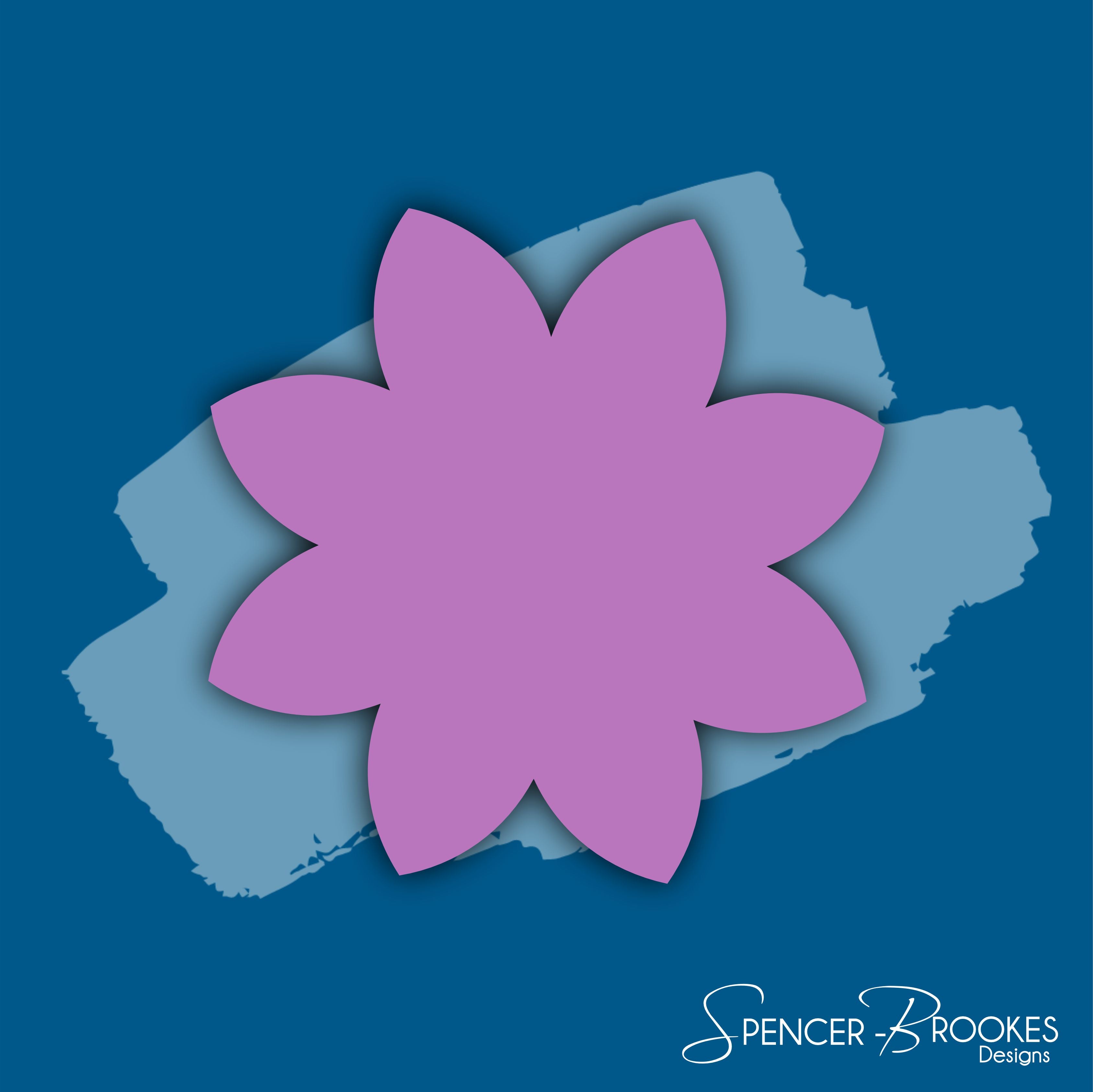 A basic flower shape in coloured acrylic. Perfect for use with vinyl and etching machines.