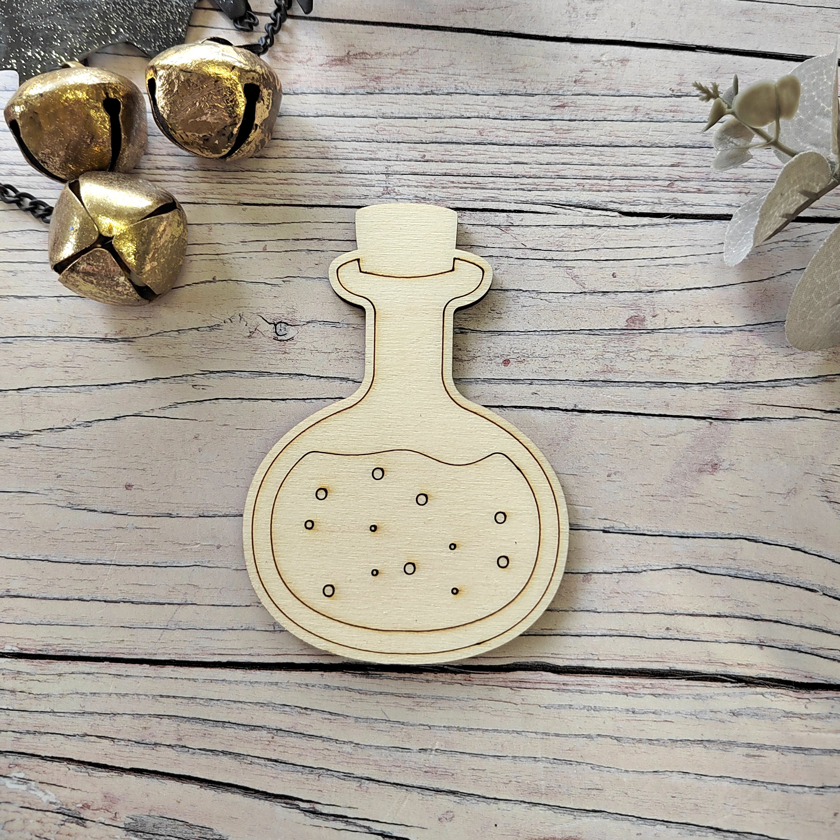A detailed potion bottle shape with etched bubbles. Perfect as a blank for painting your own Halloween designs.