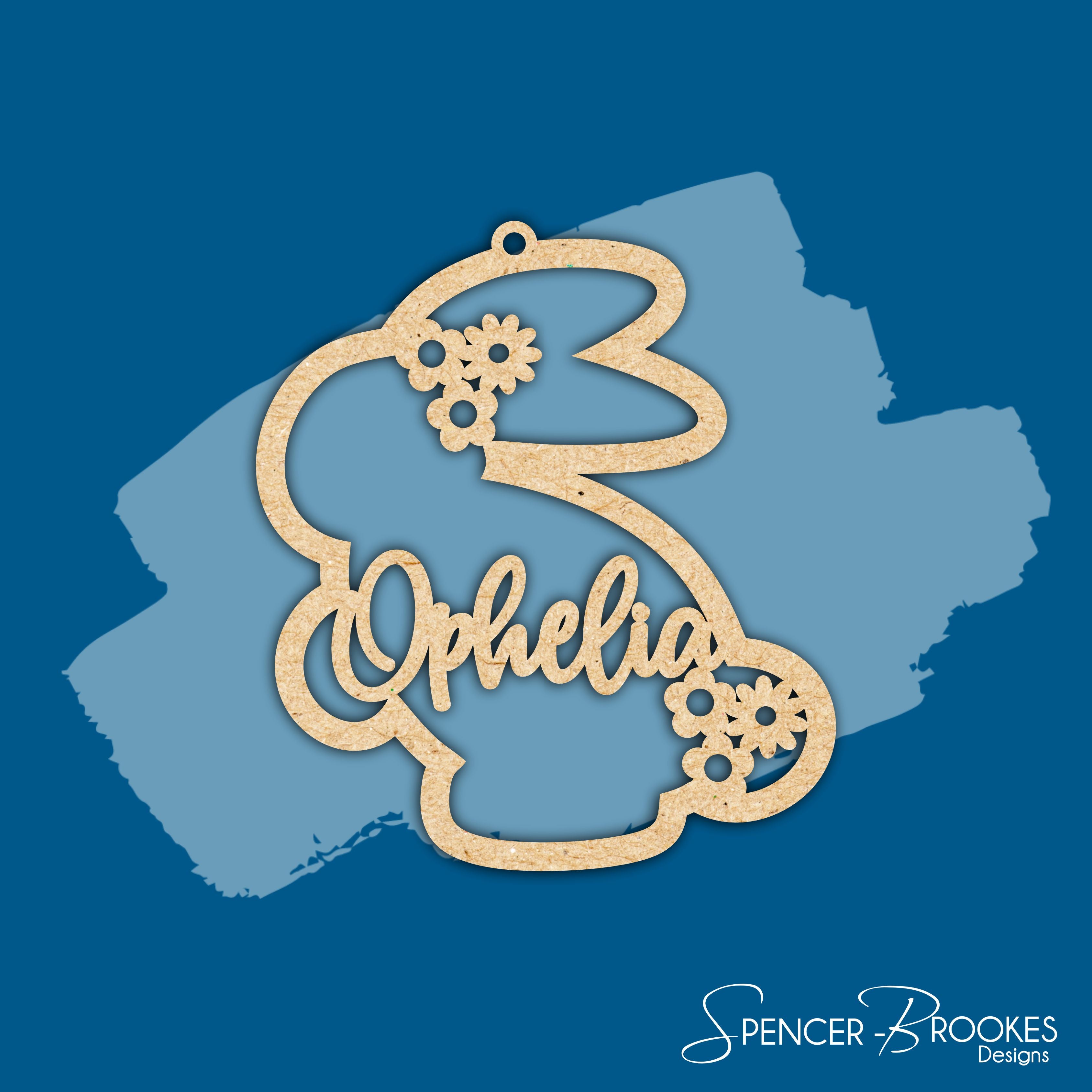 A personalised Easter bauble, in a rabbit shape with cute flowers.