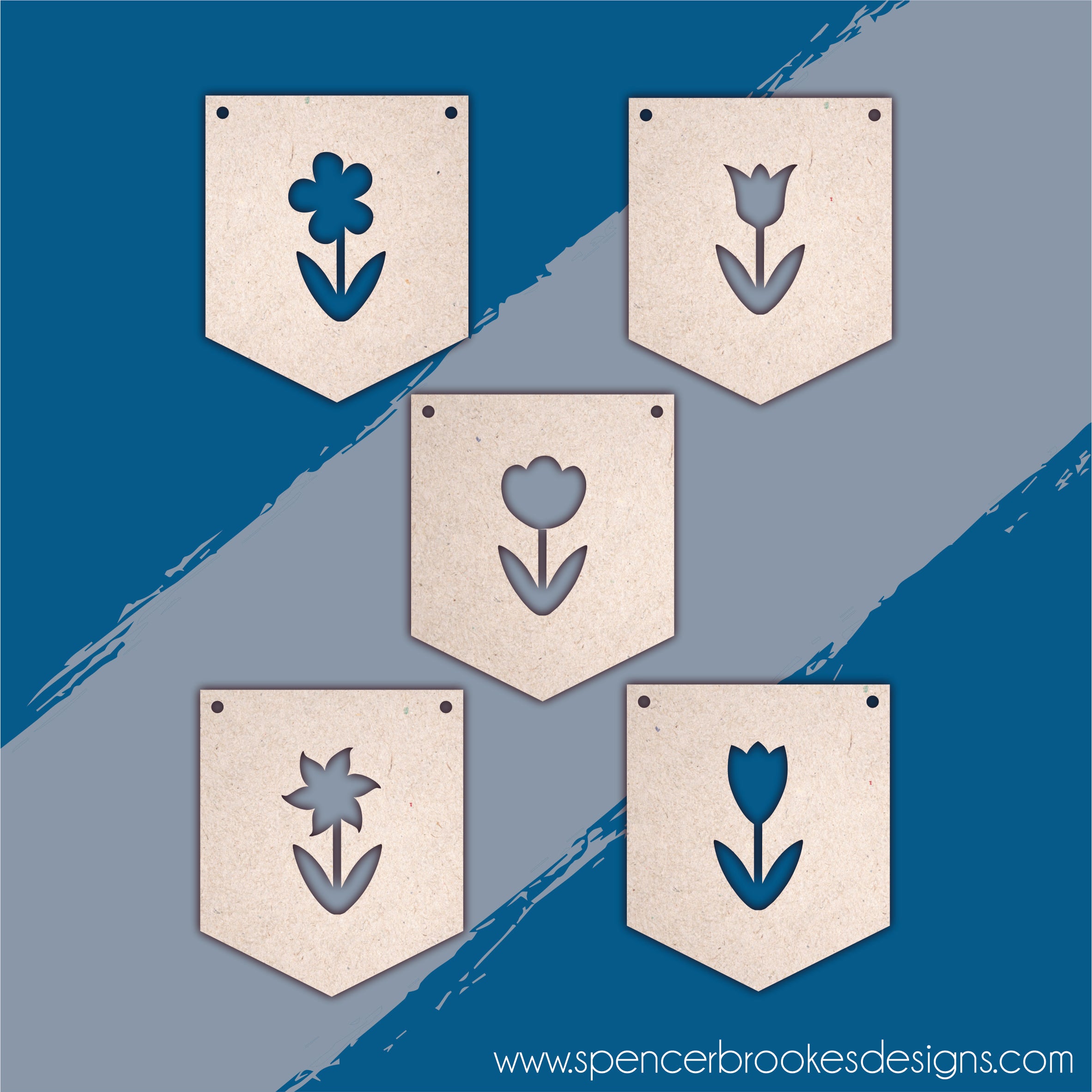 Basic botanical flag bunting set with cut through flower themed shapes.
