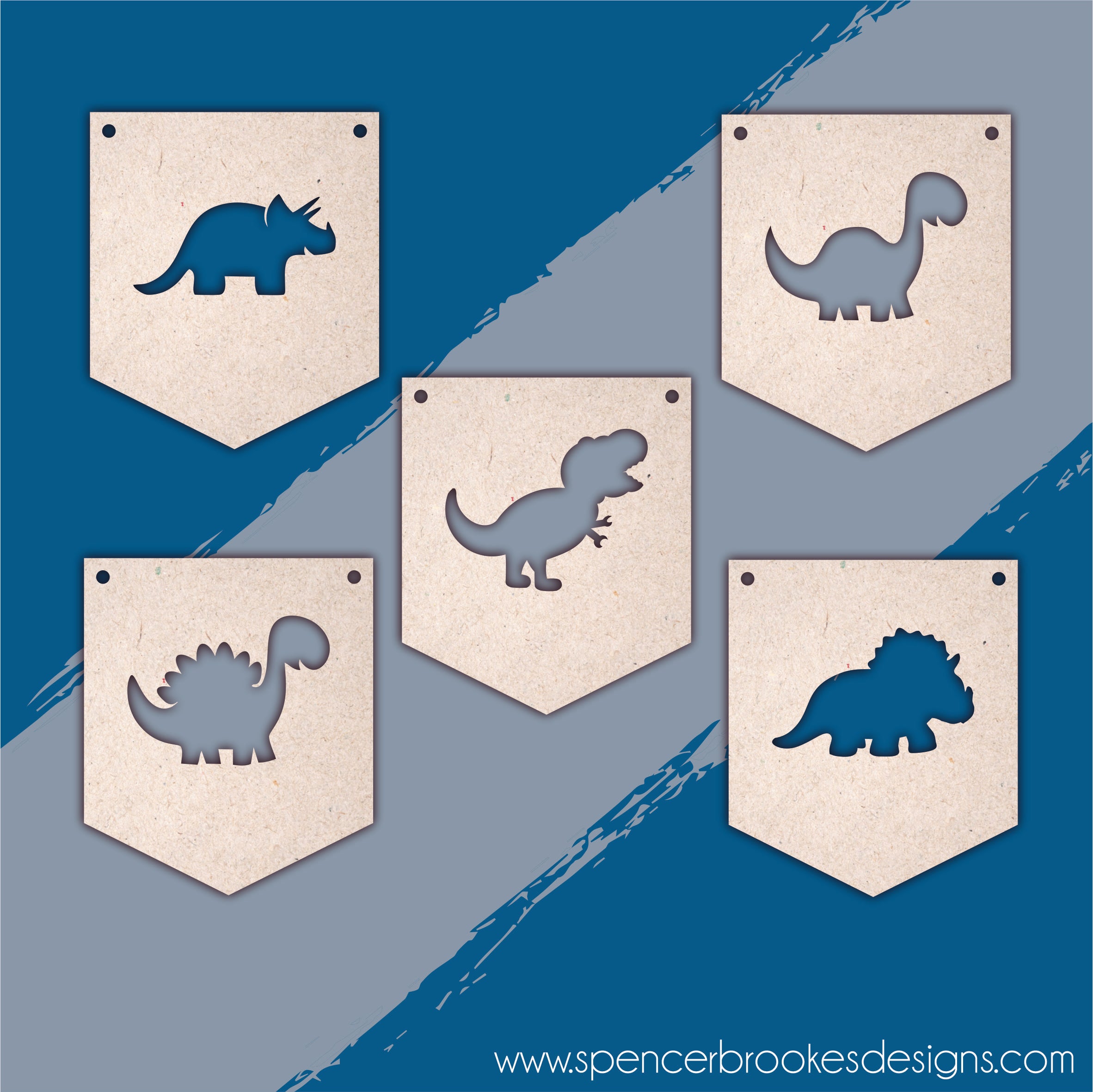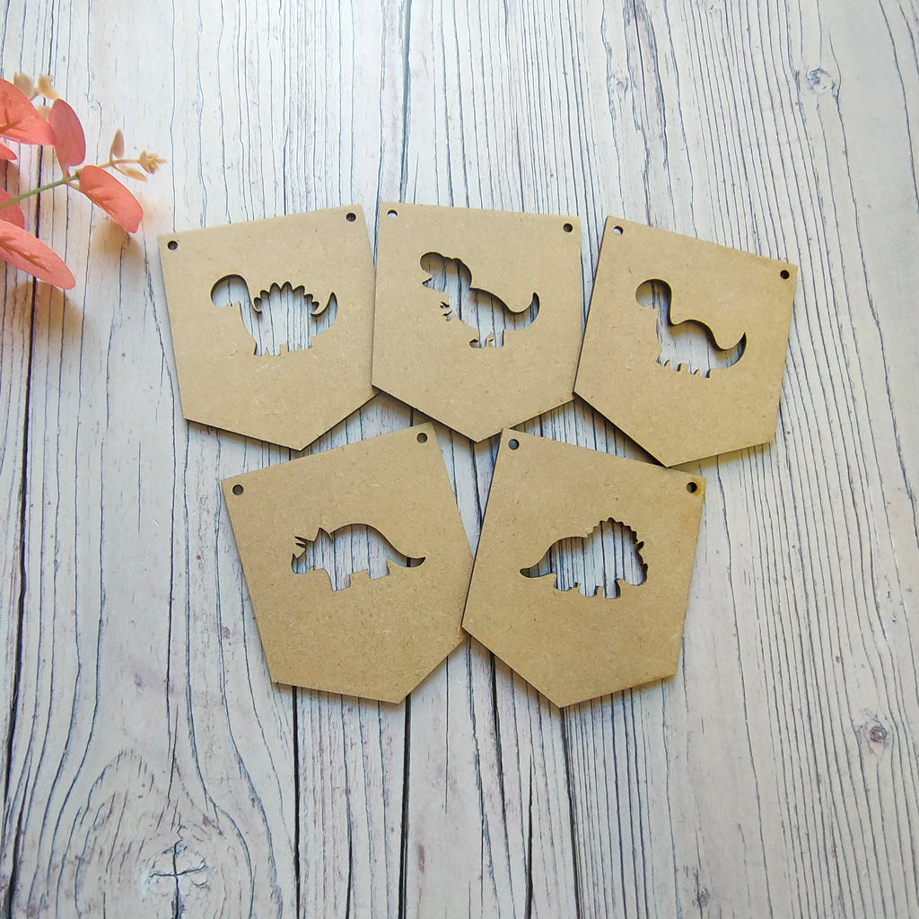 Basic children's flag bunting set with cut through dinosaur themed shapes.