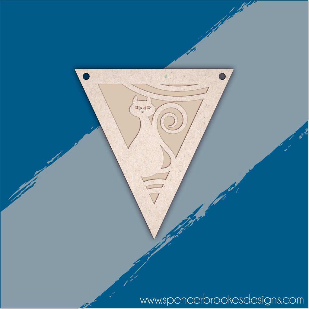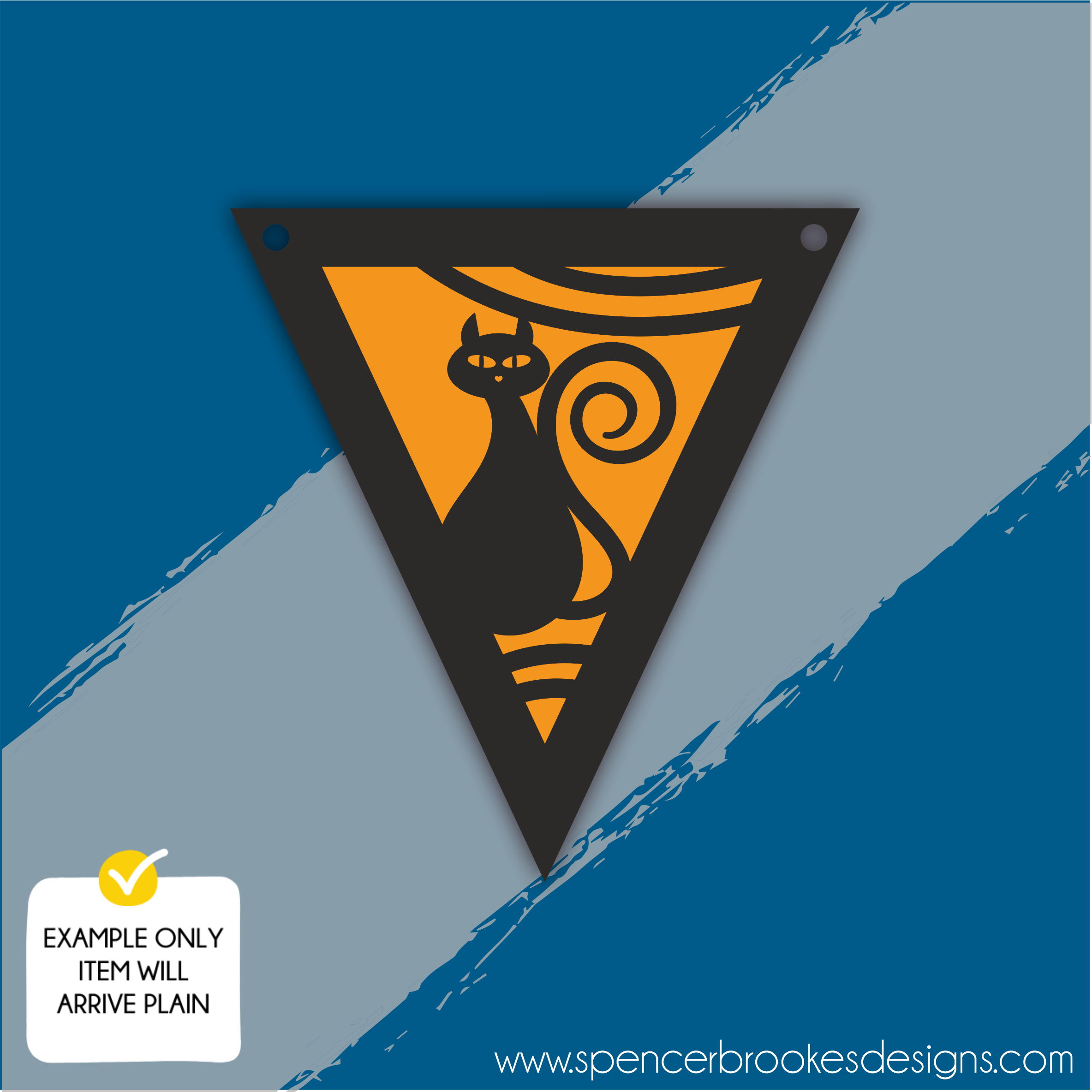 A fun triangle pennant flag shape with cut out Halloween design, and 3D back piece to sit behind. Perfect as a hanging plaque, or for creating flag bunting. Comes in multiple parts.