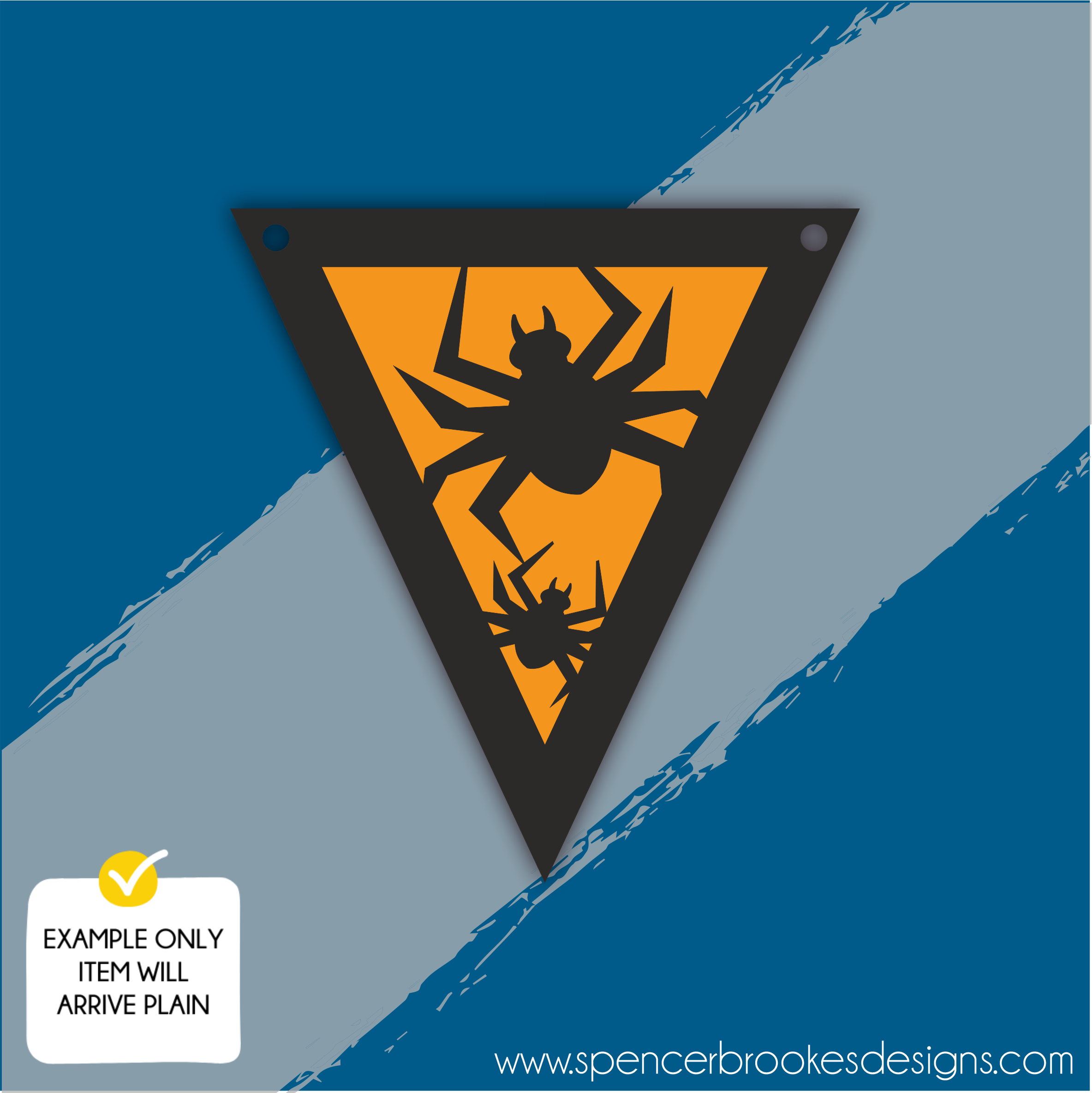 A fun triangle pennant flag shape with cut out Halloween design, and 3D back piece to sit behind. Perfect as a hanging plaque, or for creating flag bunting. Comes in multiple parts.