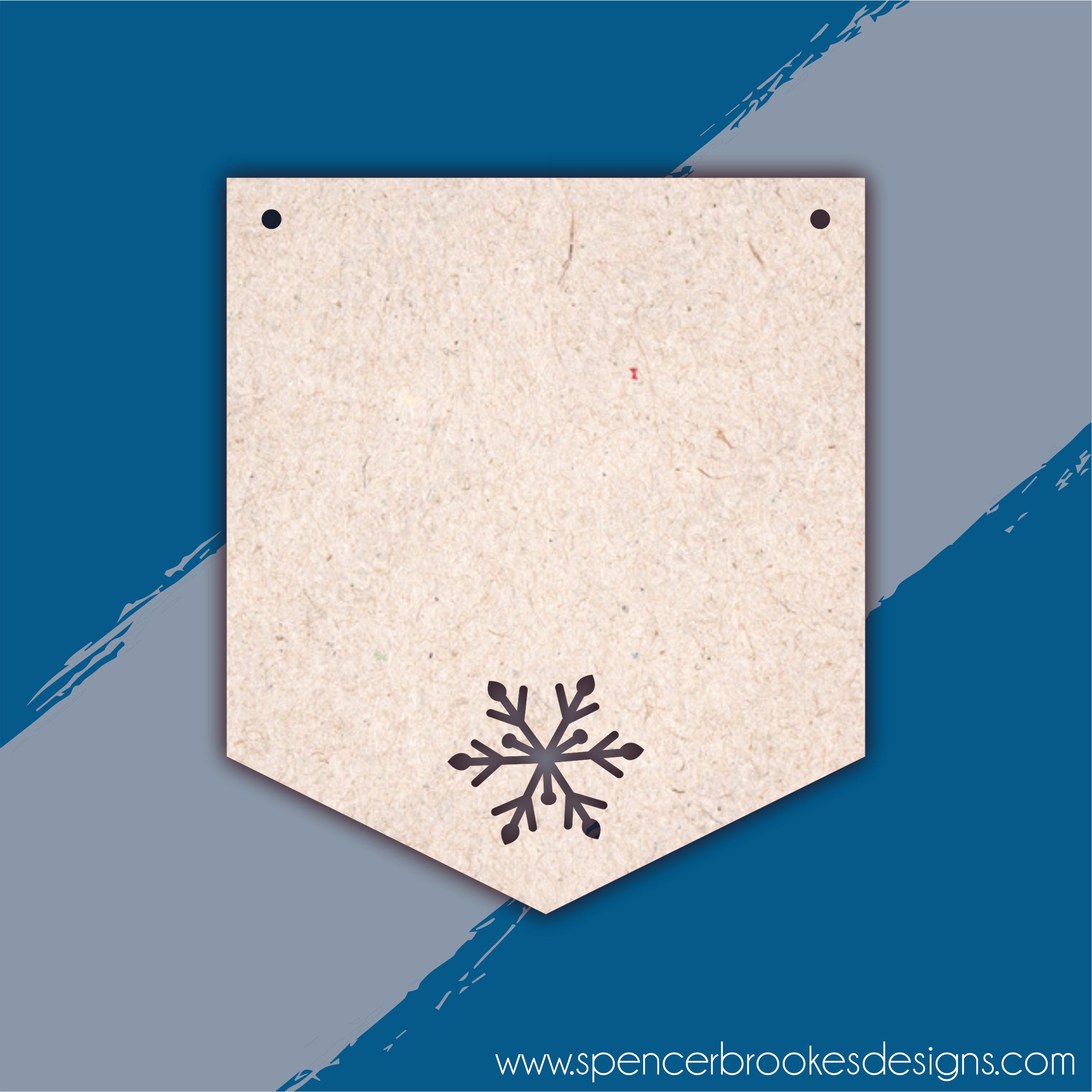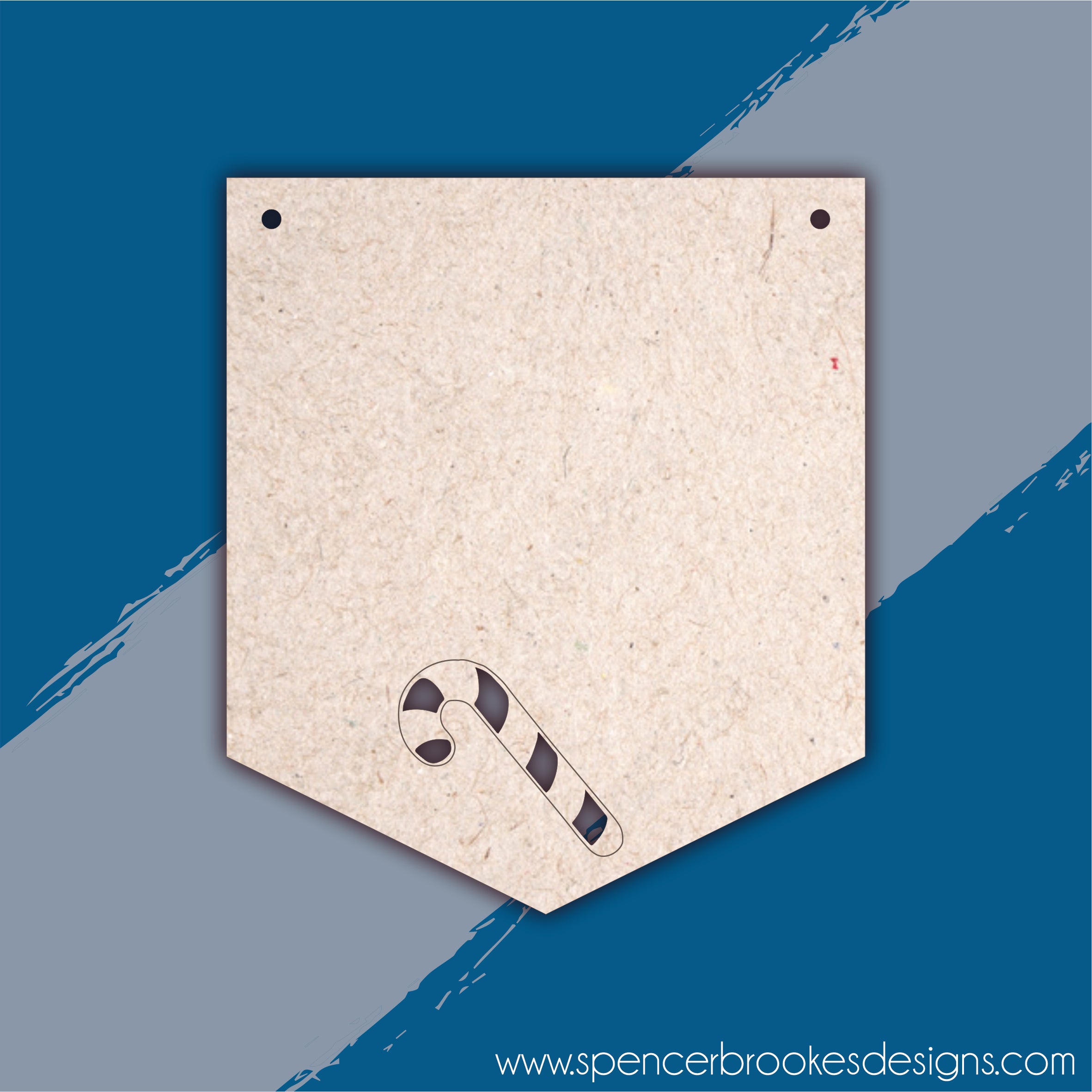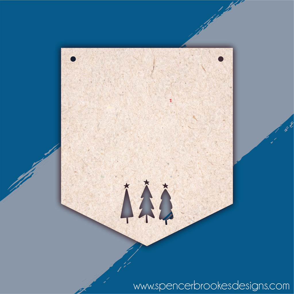 A blank pennant flag with cut through Christmas shape at the bottom. Perfect as a blank for painting your own designs, or as craft supplies for vinyl and sublimation blanks.
