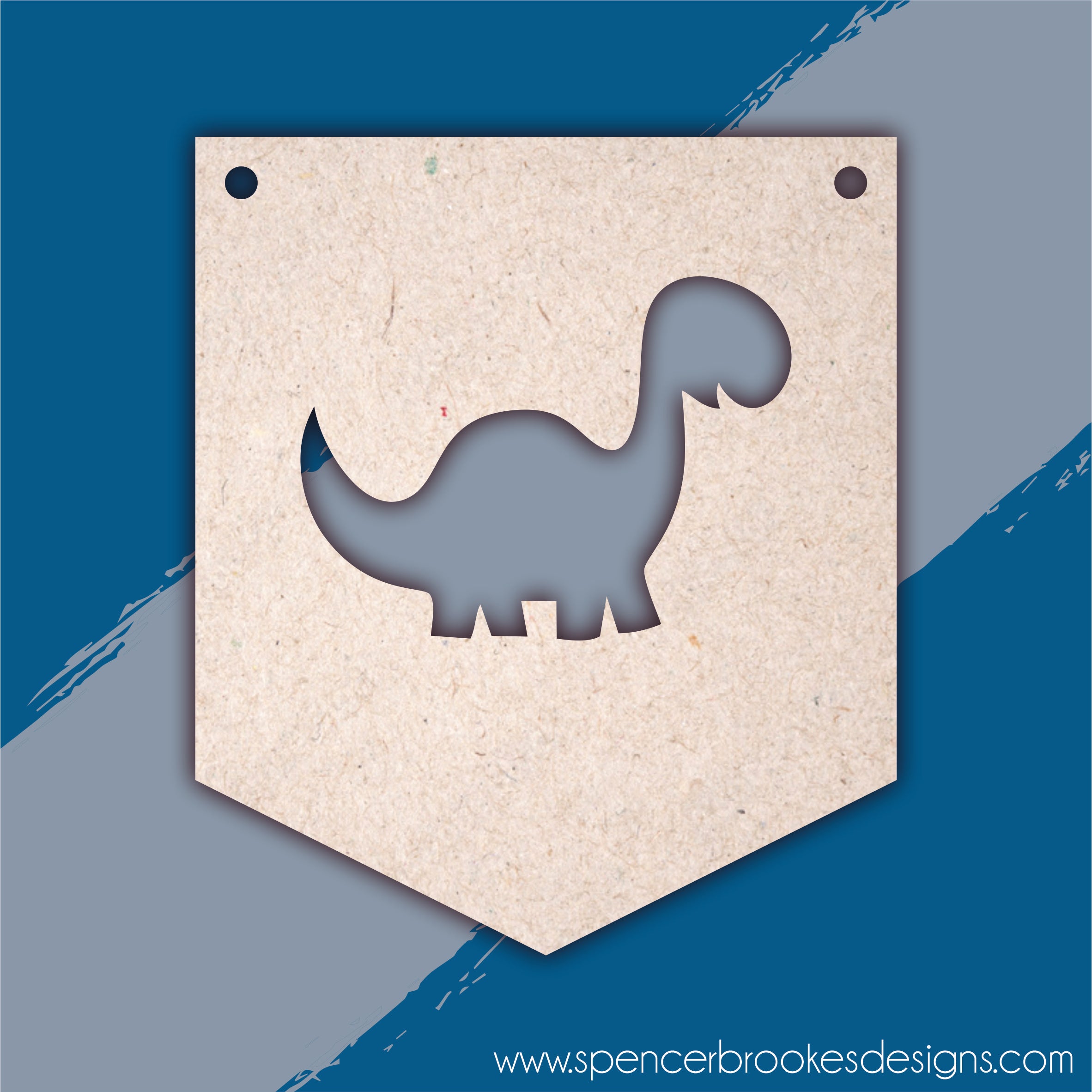Basic children's hanging pennant flag with cut through dinosaur design detail.