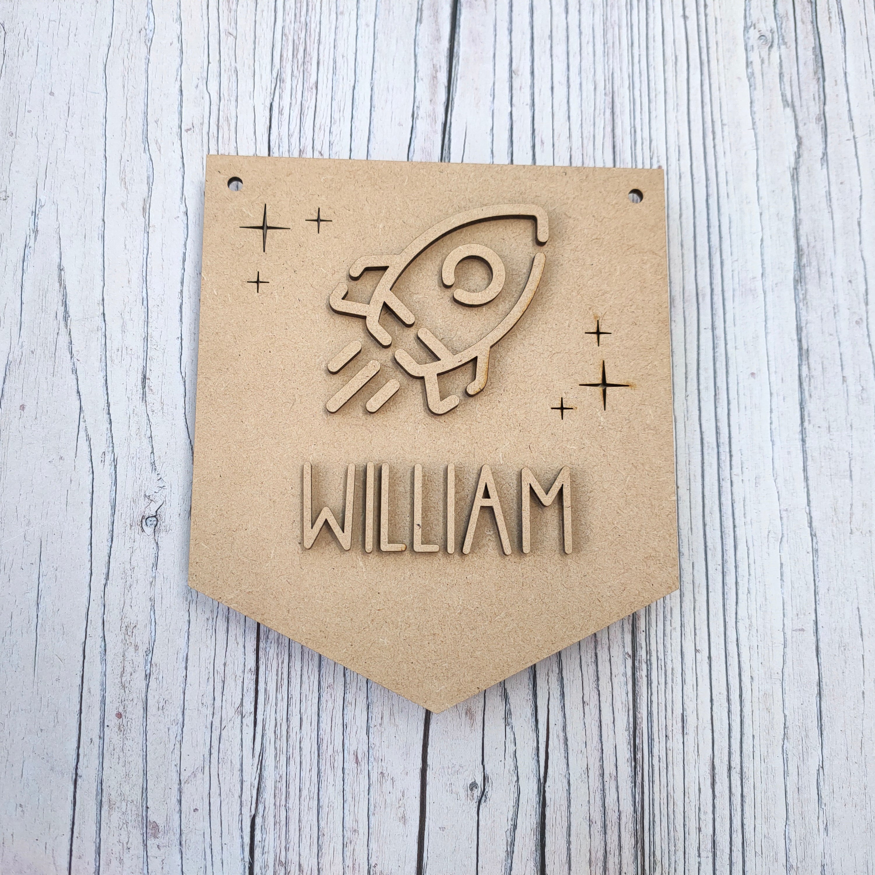 3. MDF Layered Personalised Space Rocket Pennant Flag