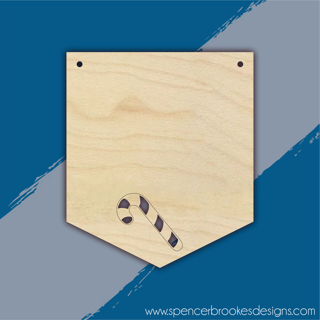 A blank pennant flag with cut through Christmas shape at the bottom. Perfect as a blank for painting your own designs, or as craft supplies for vinyl and sublimation blanks.