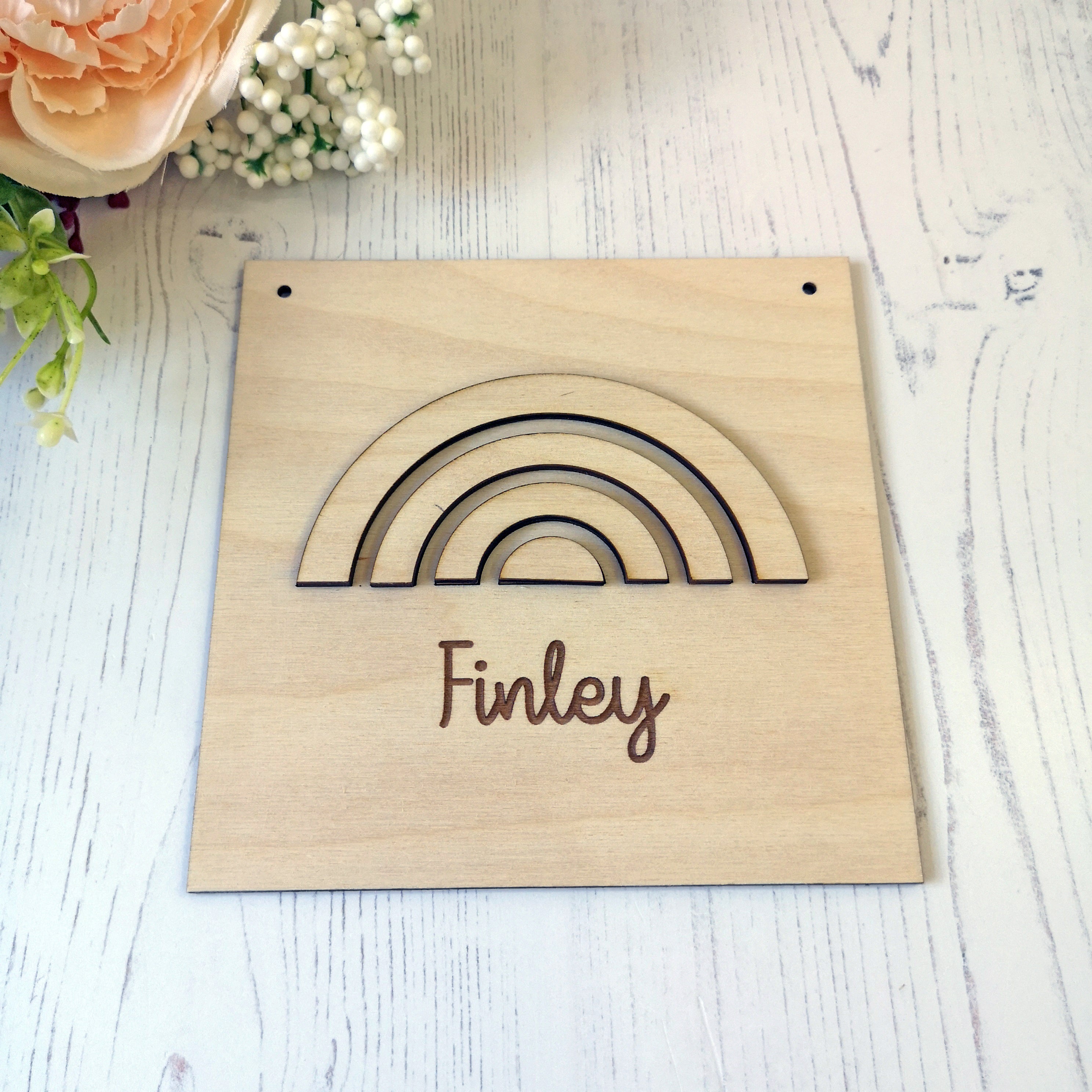 A lovely square shaped pennant, with a 3D rainbow design in the centre, and your chosen name engraved in our popular Little Miss Sunshine font below.