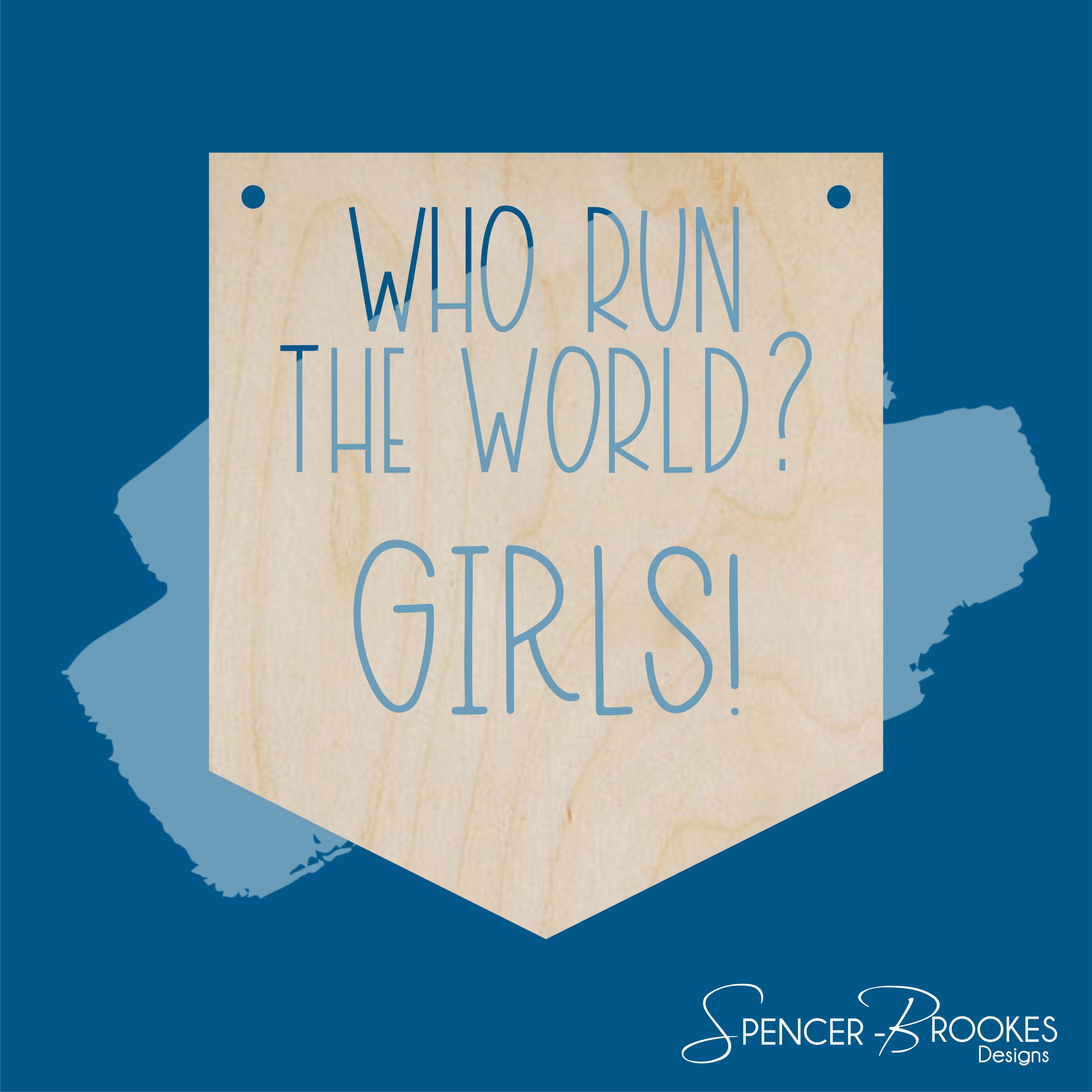 Who Run The World? GIRLS! Gorgeous wooden pennant flag with cut through details. Perfect for strong girls bredroom decorations.