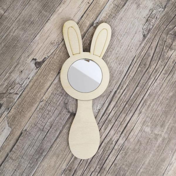 Plywood and Acrylic Mirror - Handheld Bunny