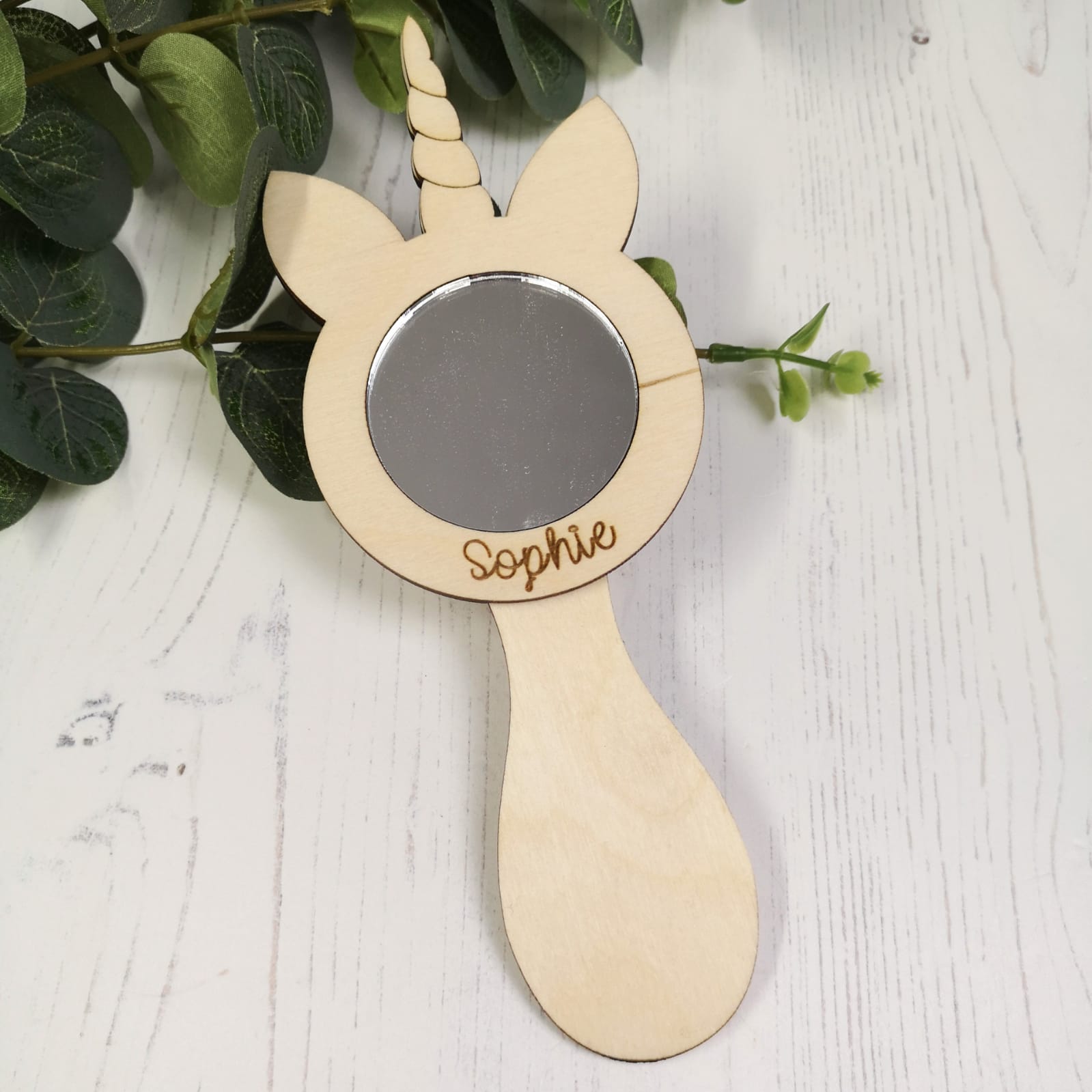 Plywood and Acrylic Mirror - Handheld Unicorn