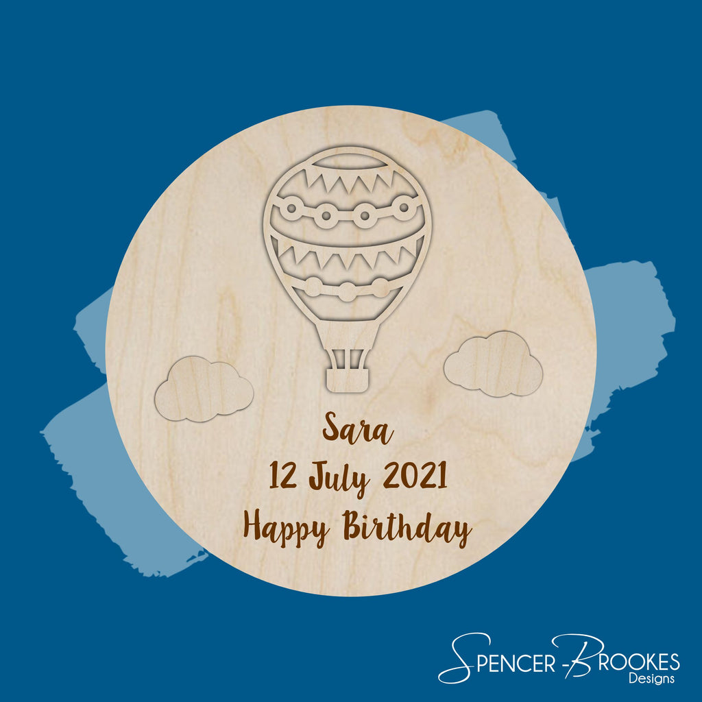 Plywood Layered Birth Details Plaque - Hot Air Balloon
