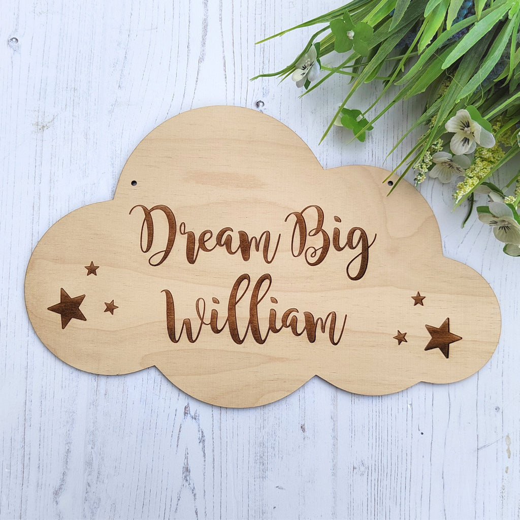 Plywood Dream Big NAME Cloud Plaque - ENGRAVED