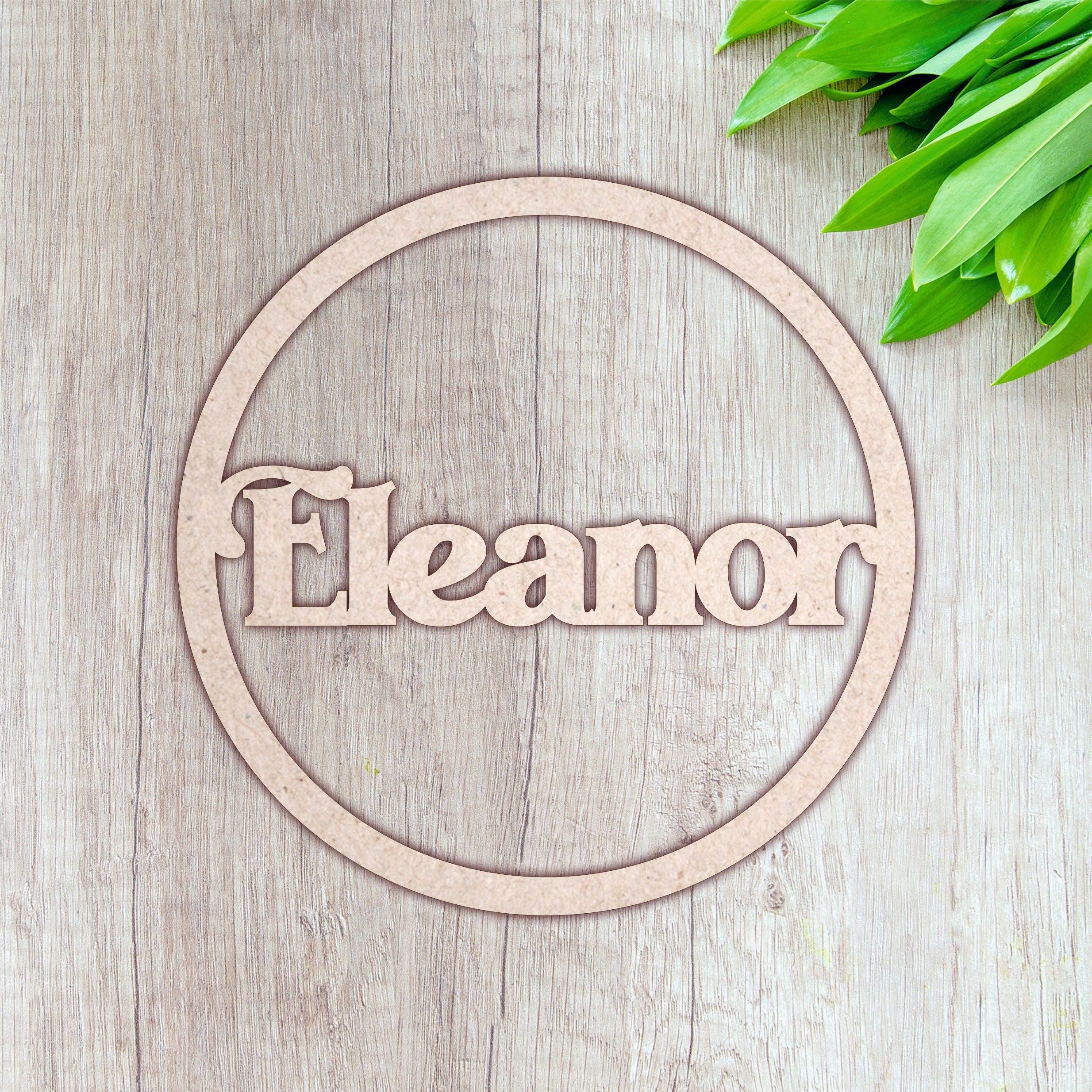 Personalised hanging hoop with cut through text detail in a stylish font.