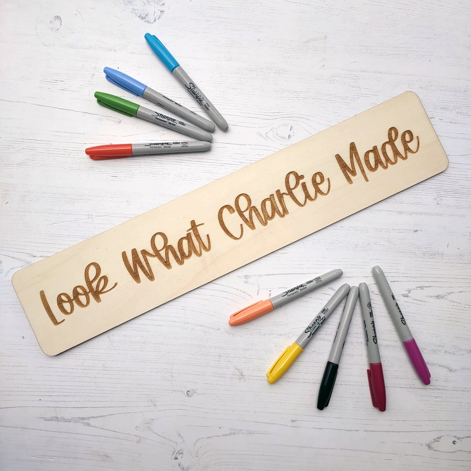 This personalised Look What NAME Made Plaque is perfect for hanging all of your little one's masterpieces on the wall.