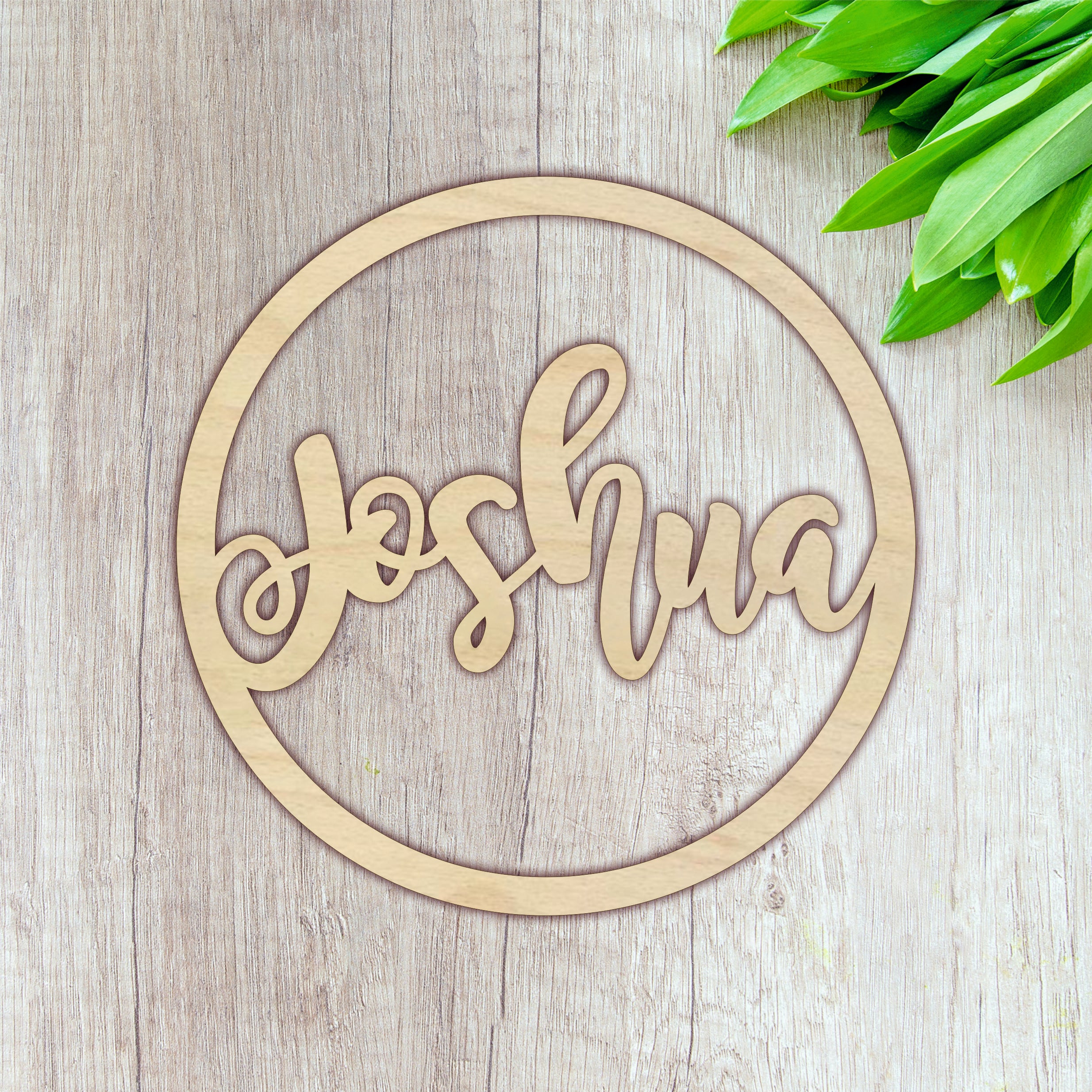 Plywood Circular Name Hoop - Sky Font