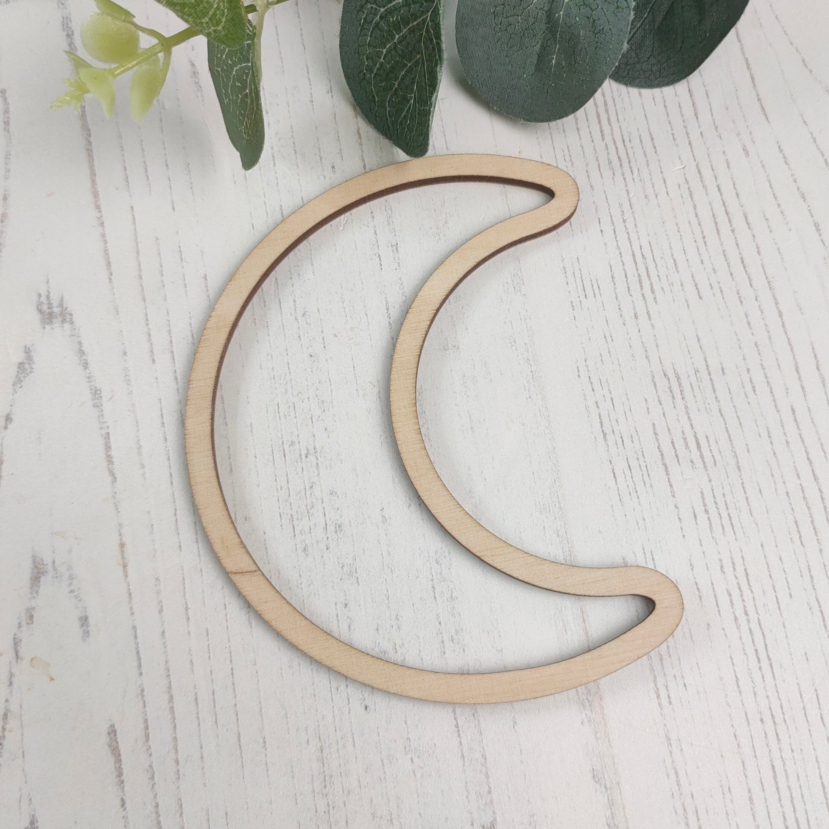 A basic moon outline shape. Perfect as a blank for creating your own dream catcher designs, or as craft supplies for macrame blanks.