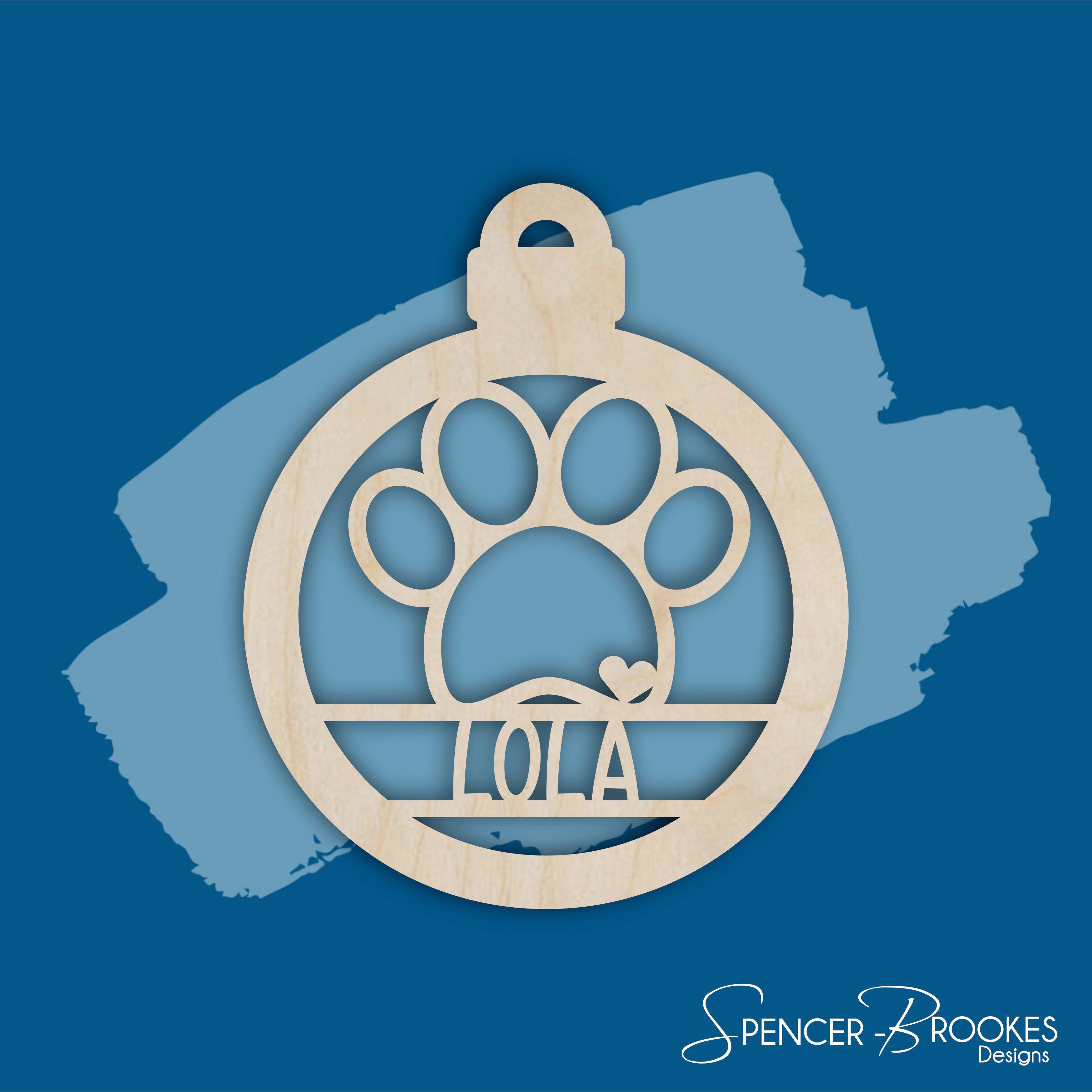 A pet Christmas bauble, with name and paw print cut out of the center.