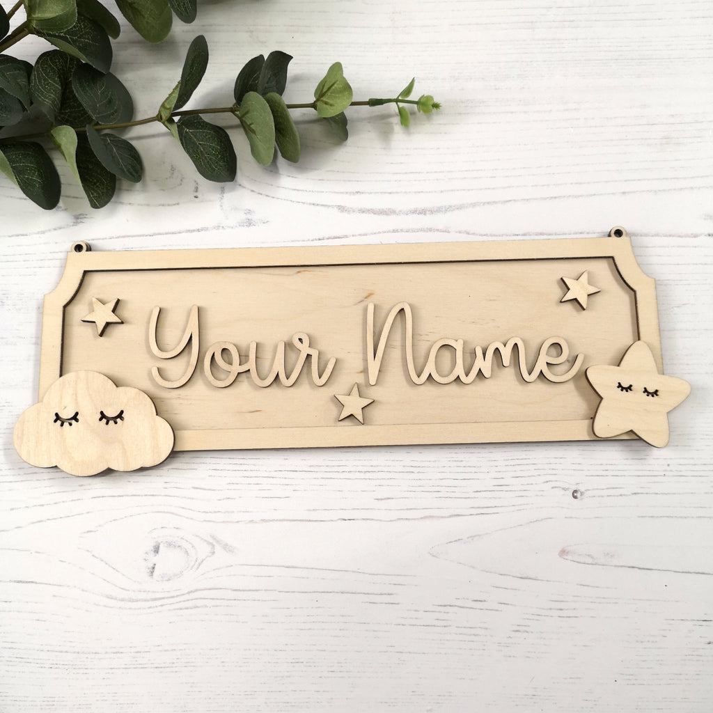 Plywood Personalised Street Sign Kit - Sleepy Cloud Star