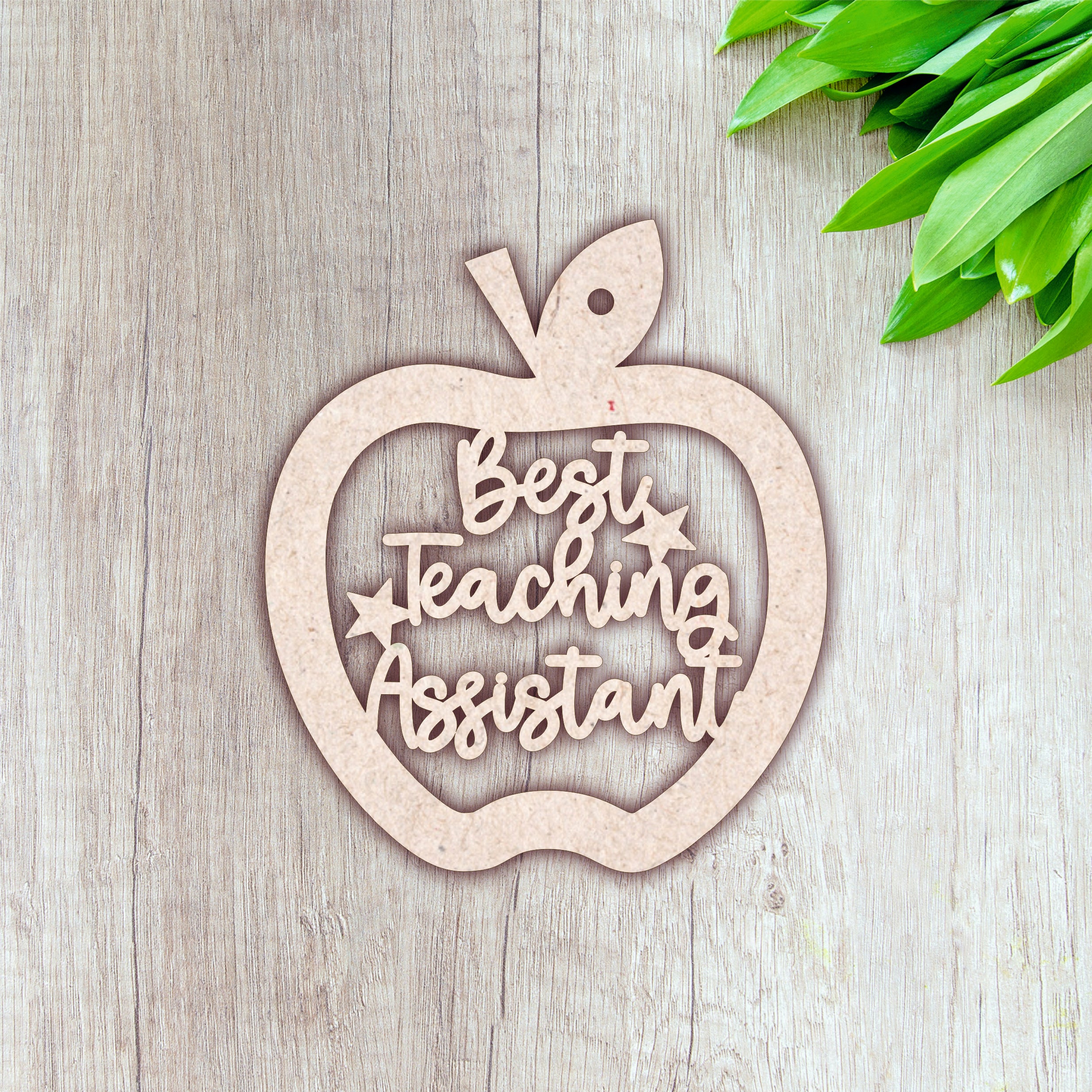 Thank you teaching assistant apple with cut through text detail in a swirly font.