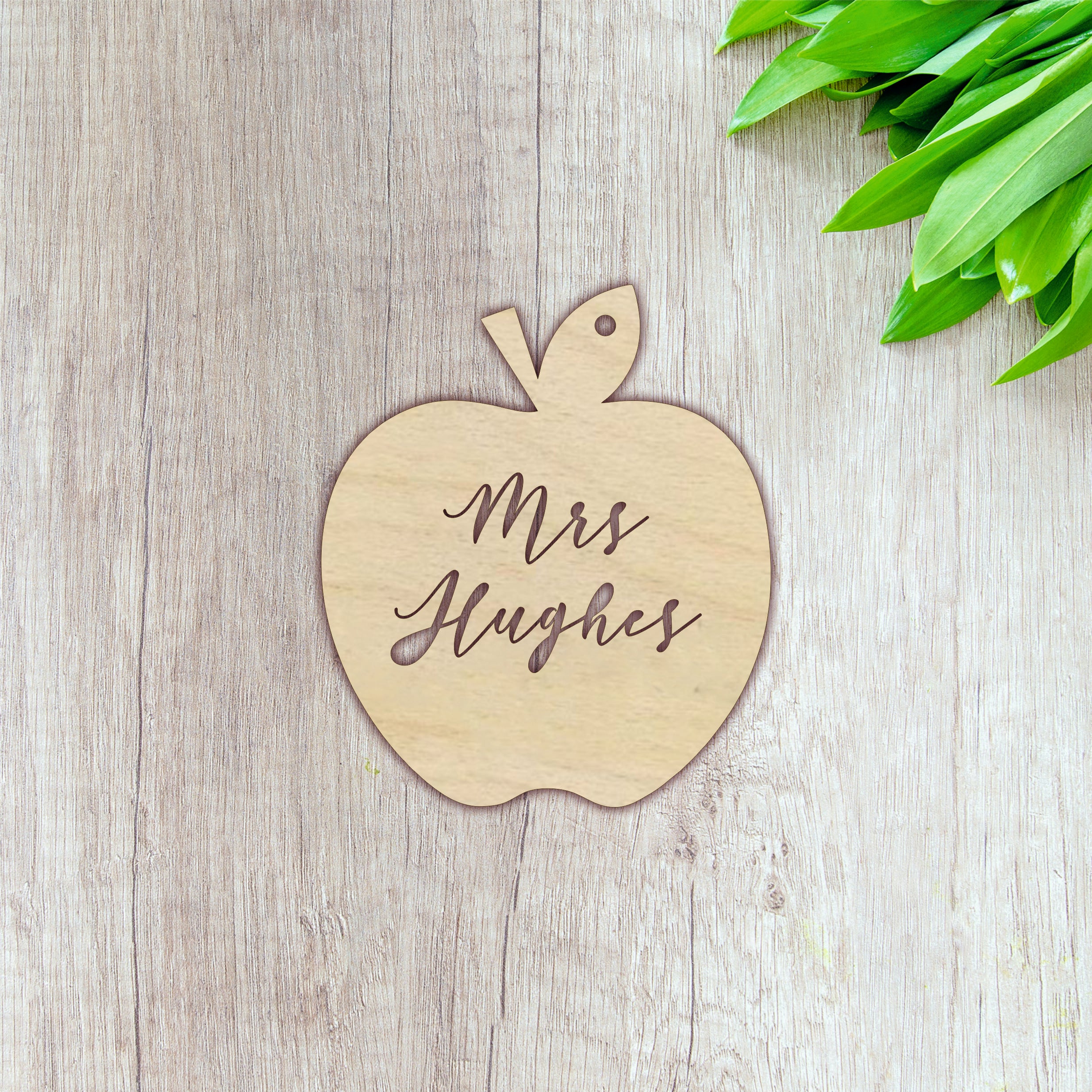Plywood Personalised Teacher Apple - Swirl Font