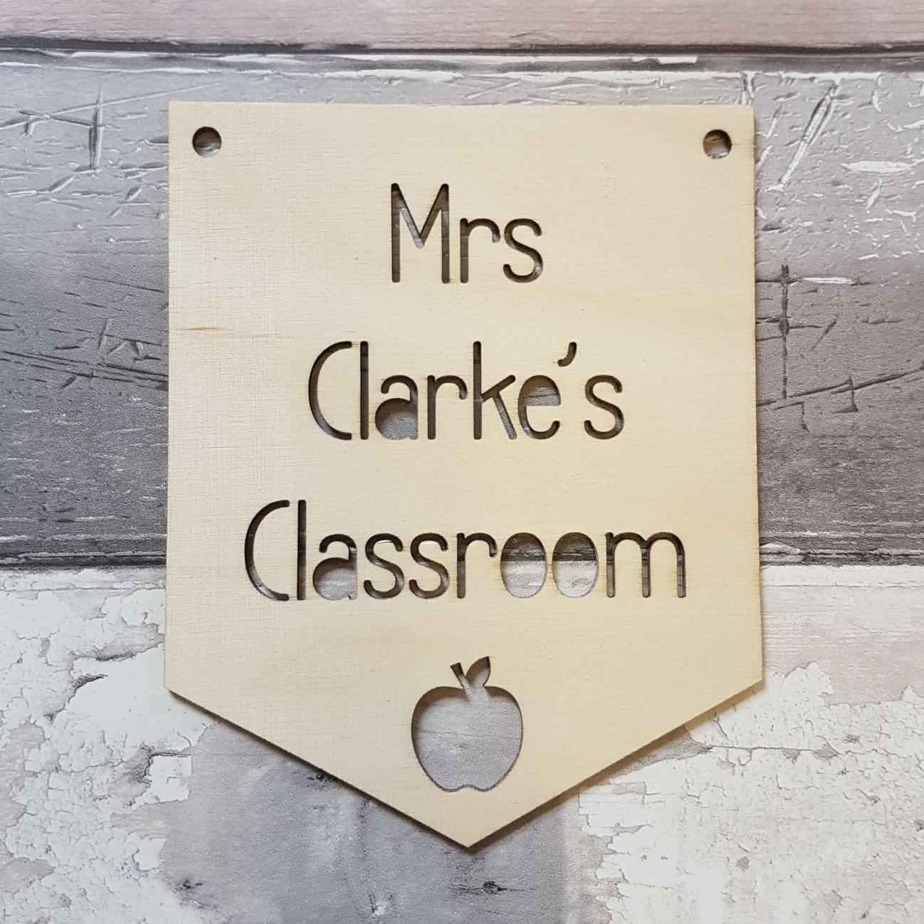 Plywood Personalised Teacher's Classroom Pennant Flag