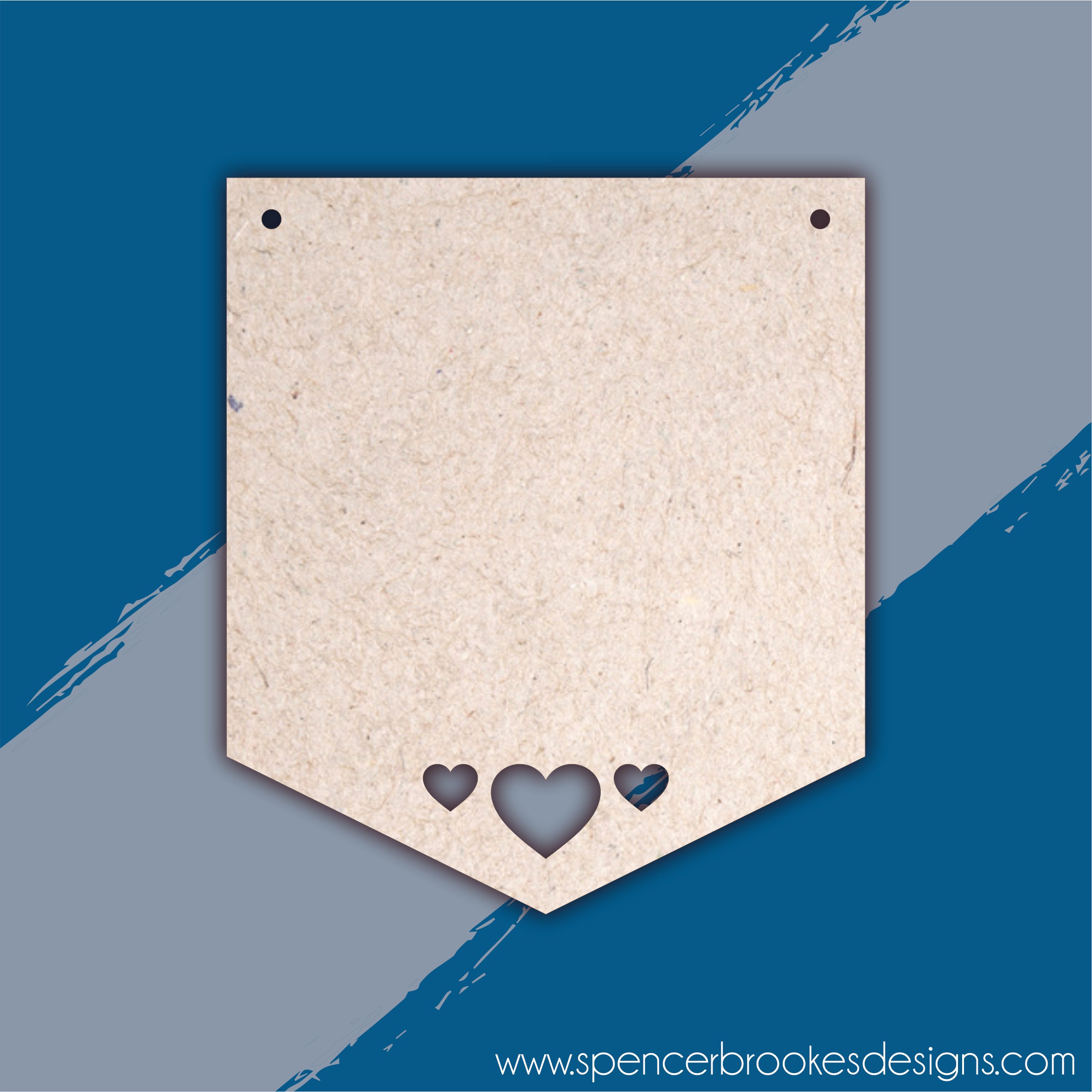 A blank pennant flag with cut through shape at the bottom. Perfect as a blank for painting your own designs, or as craft supplies for vinyl and sublimation blanks for Valentine's Day or Mother's Day.
