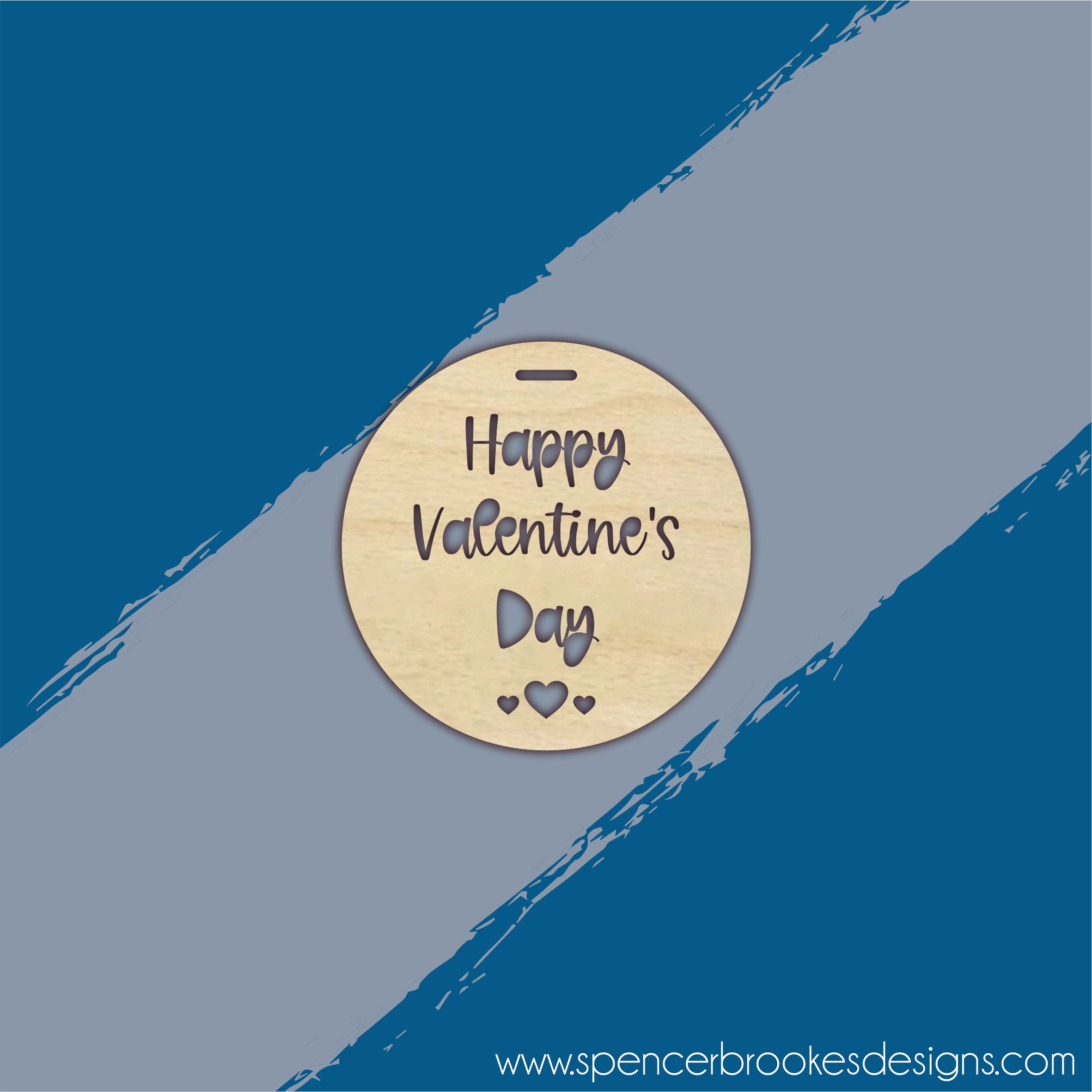 Plywood Circular Swirly Happy Valentines Day Tag With Hearts